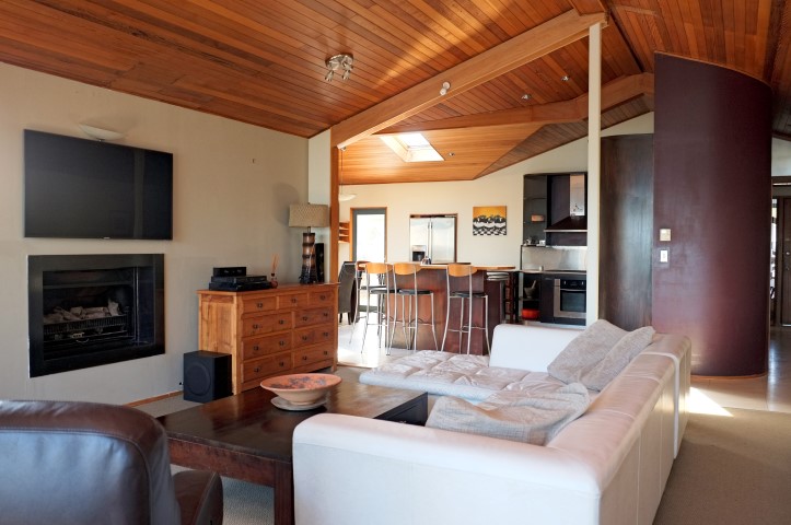 The lounge features a gas fireplace, Heat pump, Wall mounted flat screen, leather lounge suite, coffee table and enough cookbooks to make jamie oliver jealous.