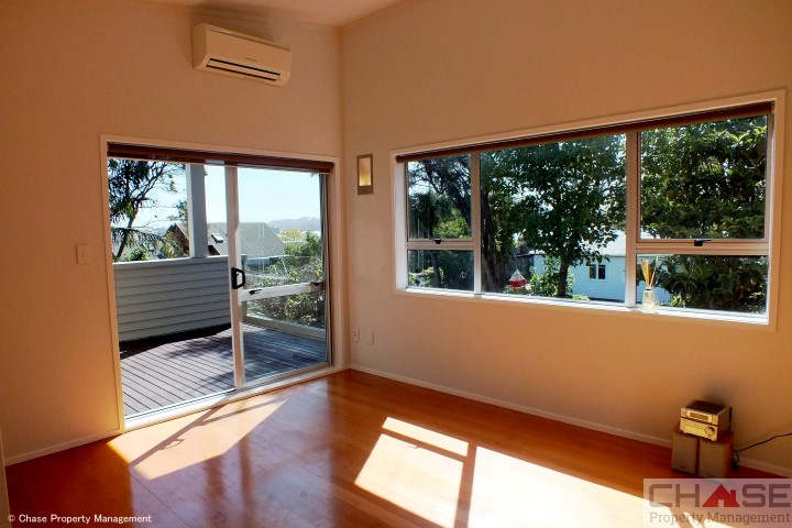 Upstairs a beautiful master suite with high stud ceilings & polished wooden floors, private deck with some sea views, Ensuite with bath and shower, and a walk in wardrobe to keep both the Mrs, and the Mr of the house happy.