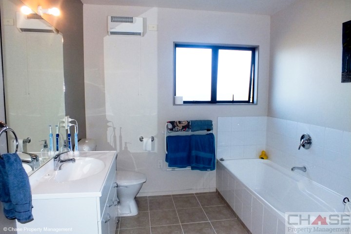 The upper level of this long bay rental home features two double bedrooms, and a large master bedroom with views to Rangitoto. The bathroom features both batha nd shower, and has direct access from the master bedroom!