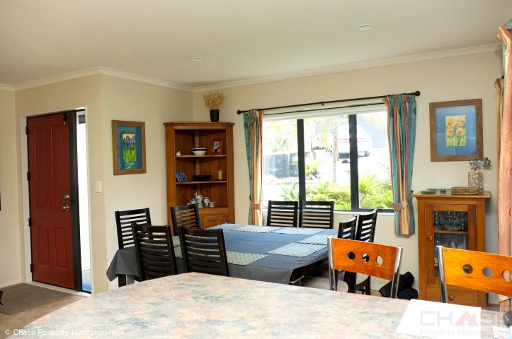 Walking through the front door you'll find an open plan family room and spacious dining area, kitchen with plenty of cupboards and dishwasher.
